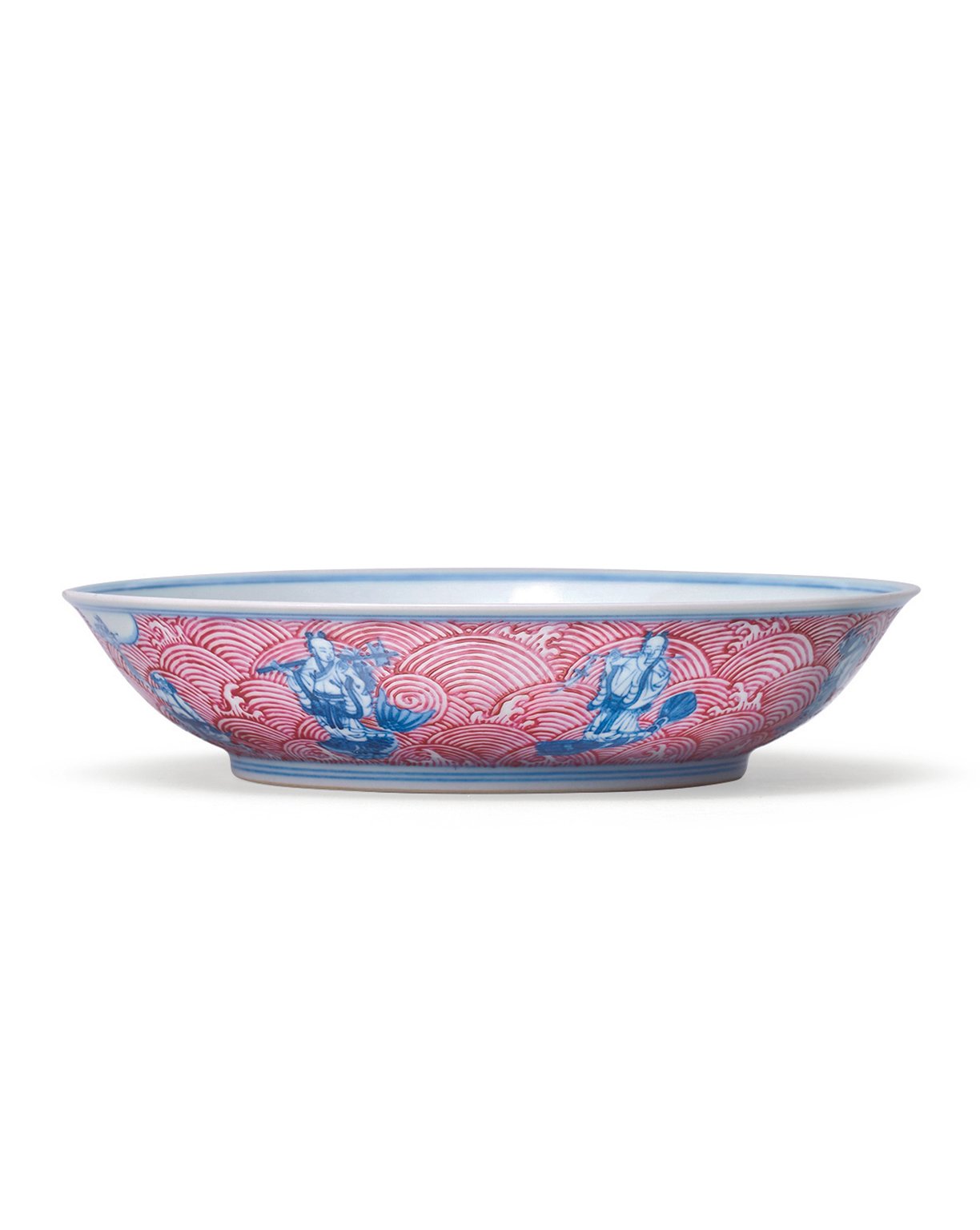 6169 清道光 大清道光年製款 胭脂紅釉青花八仙盤