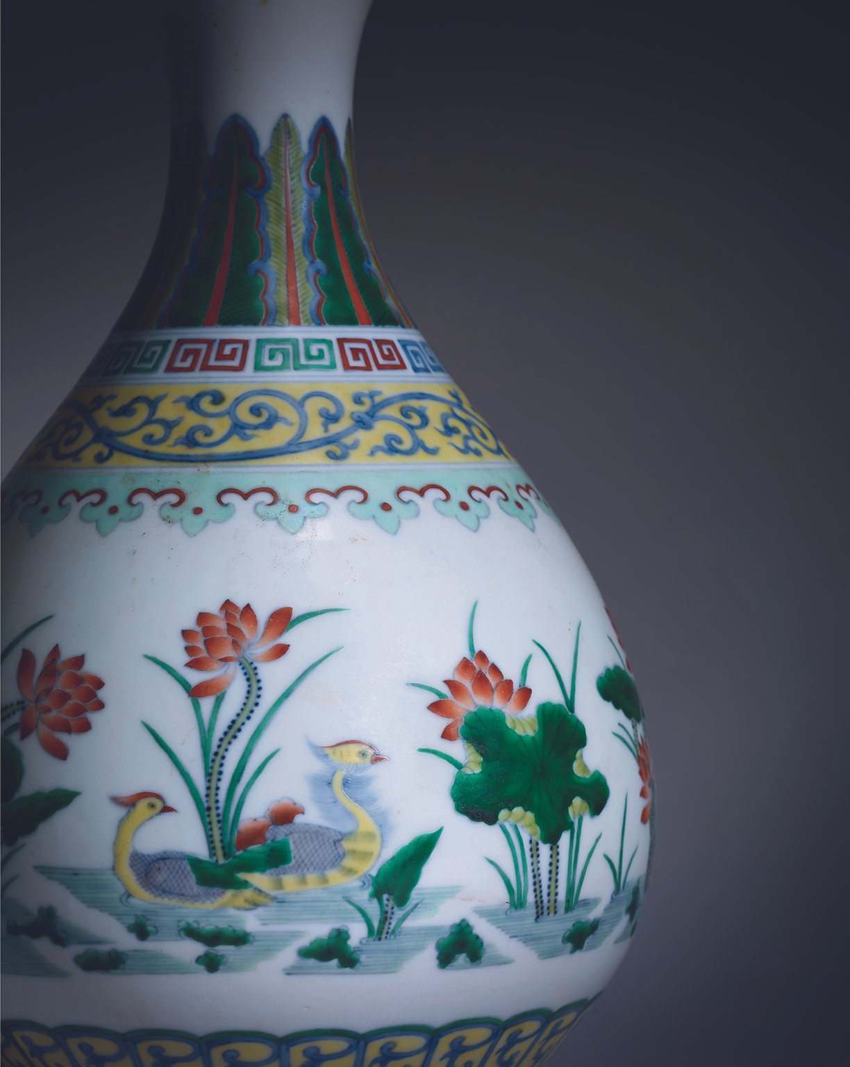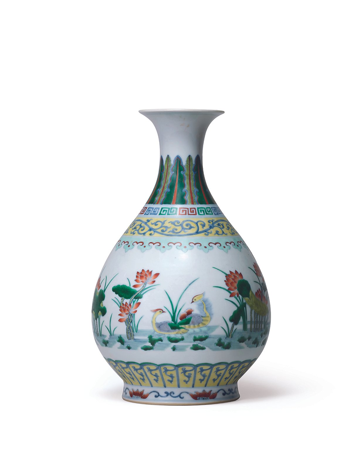 6172 清乾隆 大清乾隆年製 鬥彩荷蓮鴛鴦玉壺春