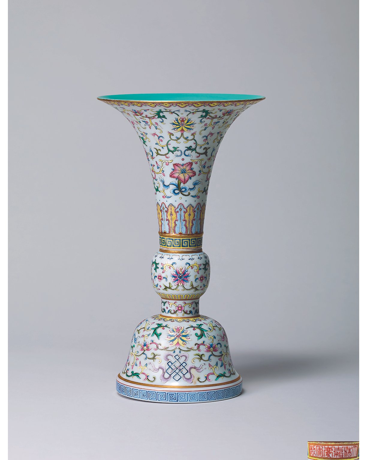 6173 清嘉慶 大清嘉慶年製款 粉彩八吉祥花觚