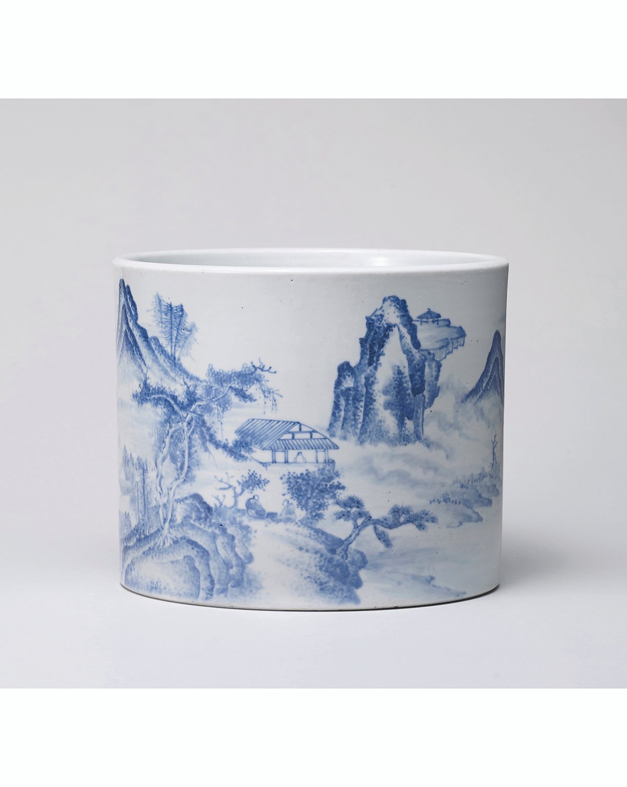 6175 清代 18世紀 青花山水米點皴筆筒