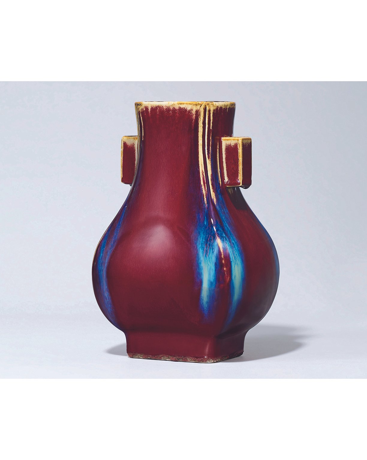 6177 清代 雍正年製款 窯變釉夔耳方壺