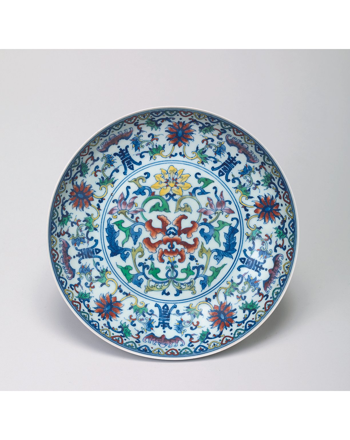 6181 清代 大清雍正年製款 青花鬥彩福壽花卉紋盤