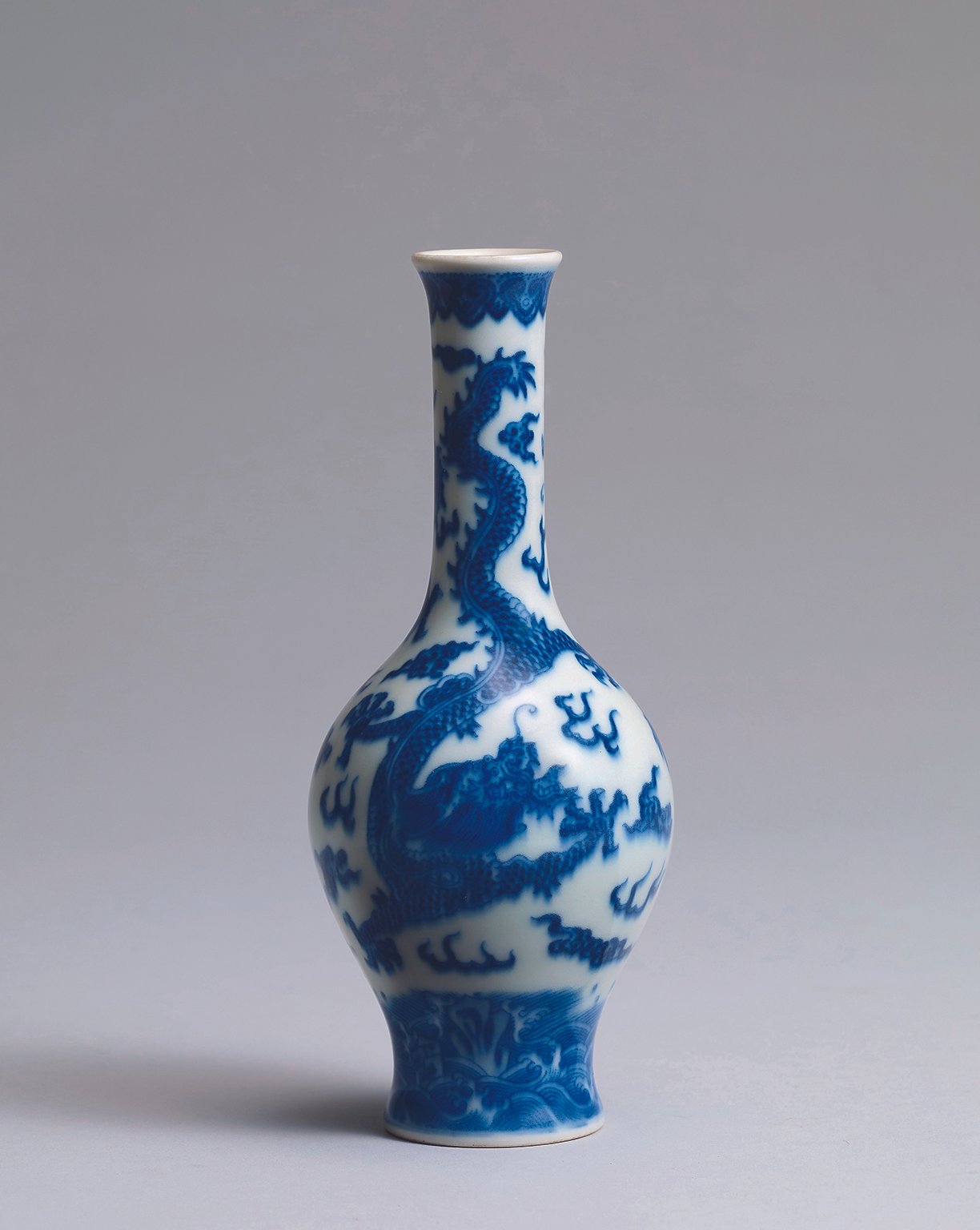 6182 清代 大清乾隆年製款 青花雲龍紋長頸瓶