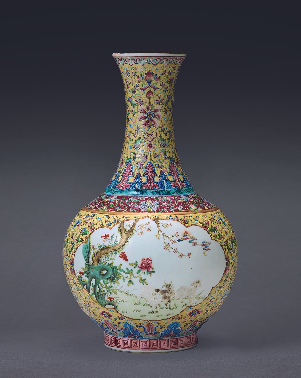 6184 清代 大清光緒年製款 粉彩開光描金花卉大賞瓶