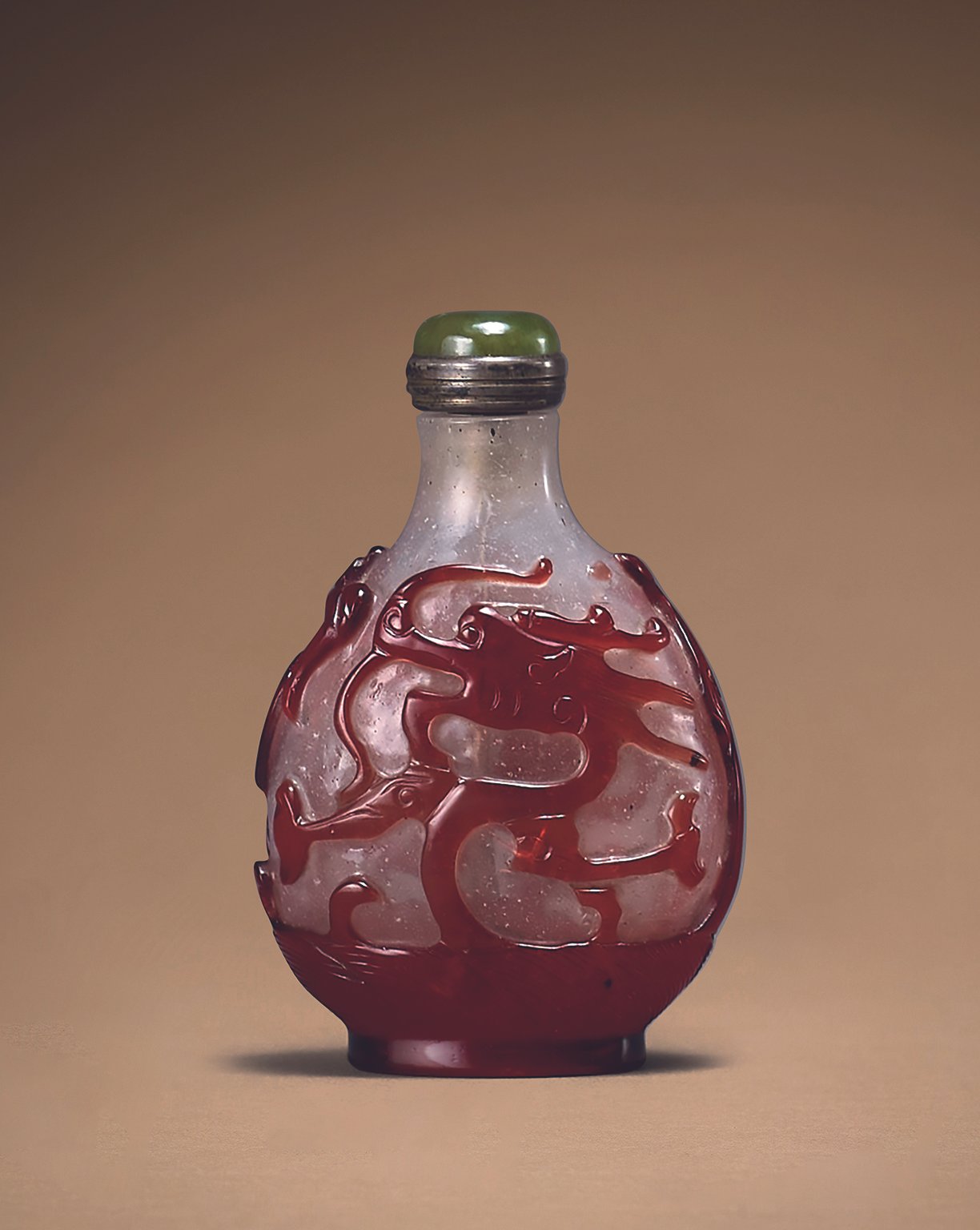 6190 清乾隆 霏雪地套紅料龍紋鼻煙壺