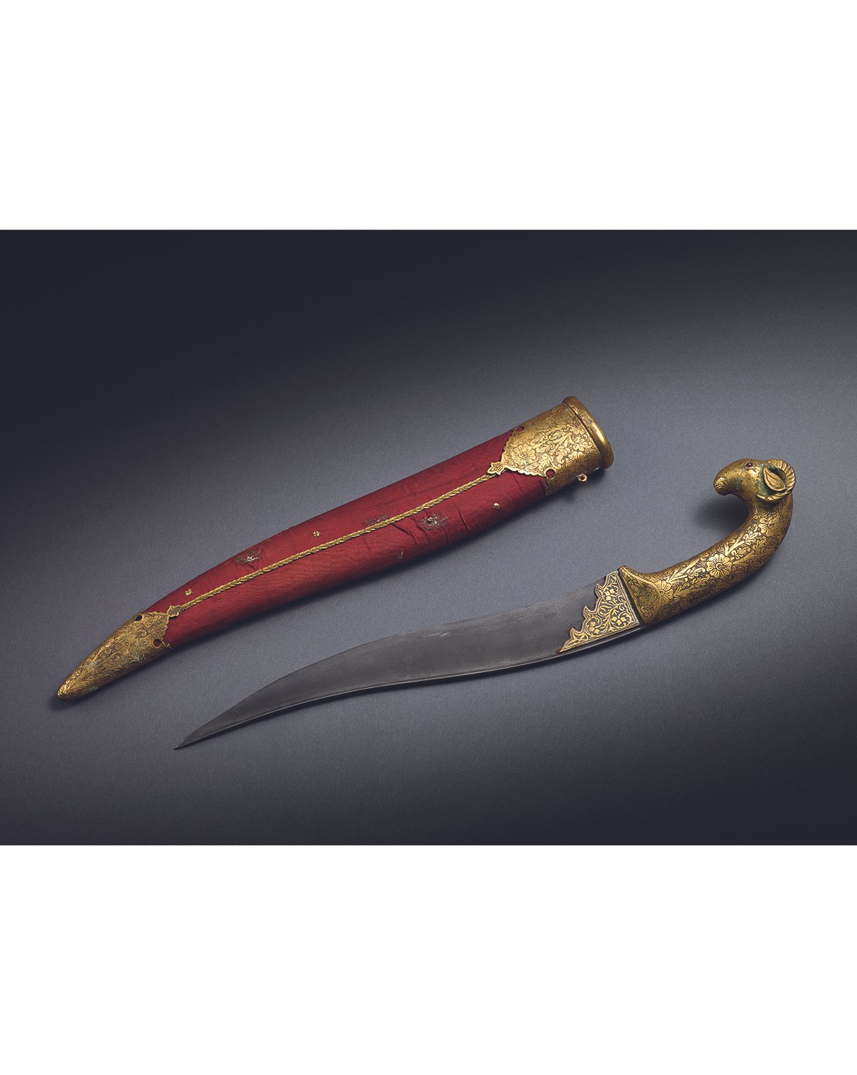 6205 十九世紀 鎏金銅雕羊首形柄匕首坎查劍