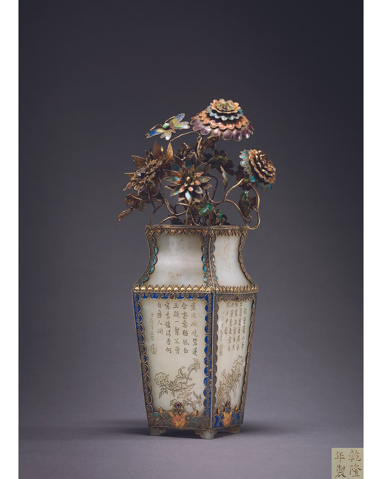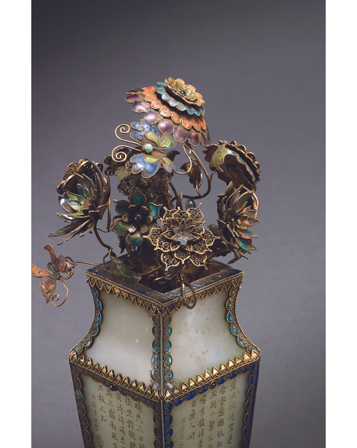6206 清乾隆 乾隆年製 三希堂款 銅嵌白玉詩文方瓶