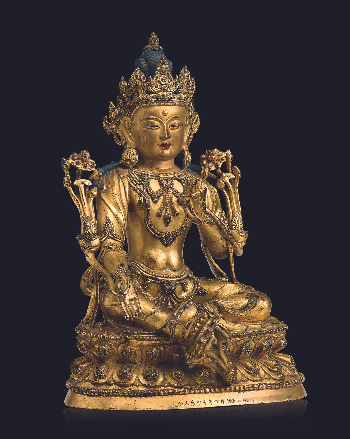 6209 清仿明 大明永樂甲午年四月十五日施款 銅鎏金度母像