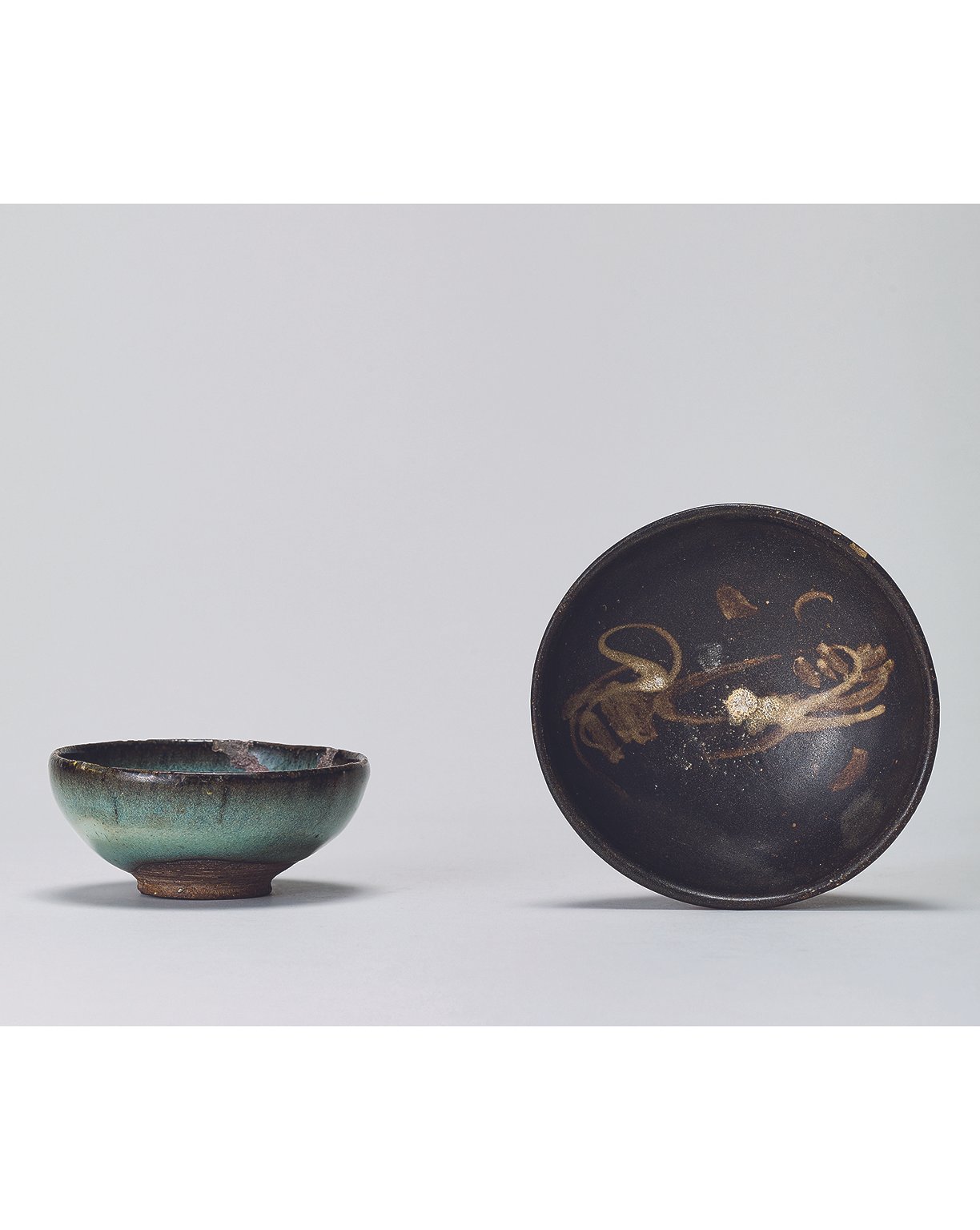 6124 宋代 鈞窯天藍釉茶盞 / 吉州窯黑釉花紋碗