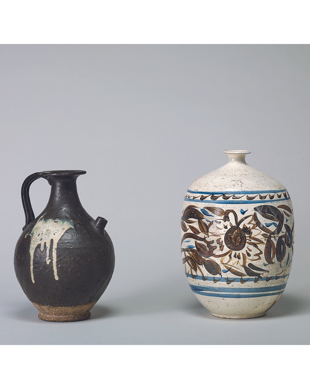 6125 唐代 / 元代 黑釉灑藍斑執壺 / 白地綠彩藍邊花卉紋罐