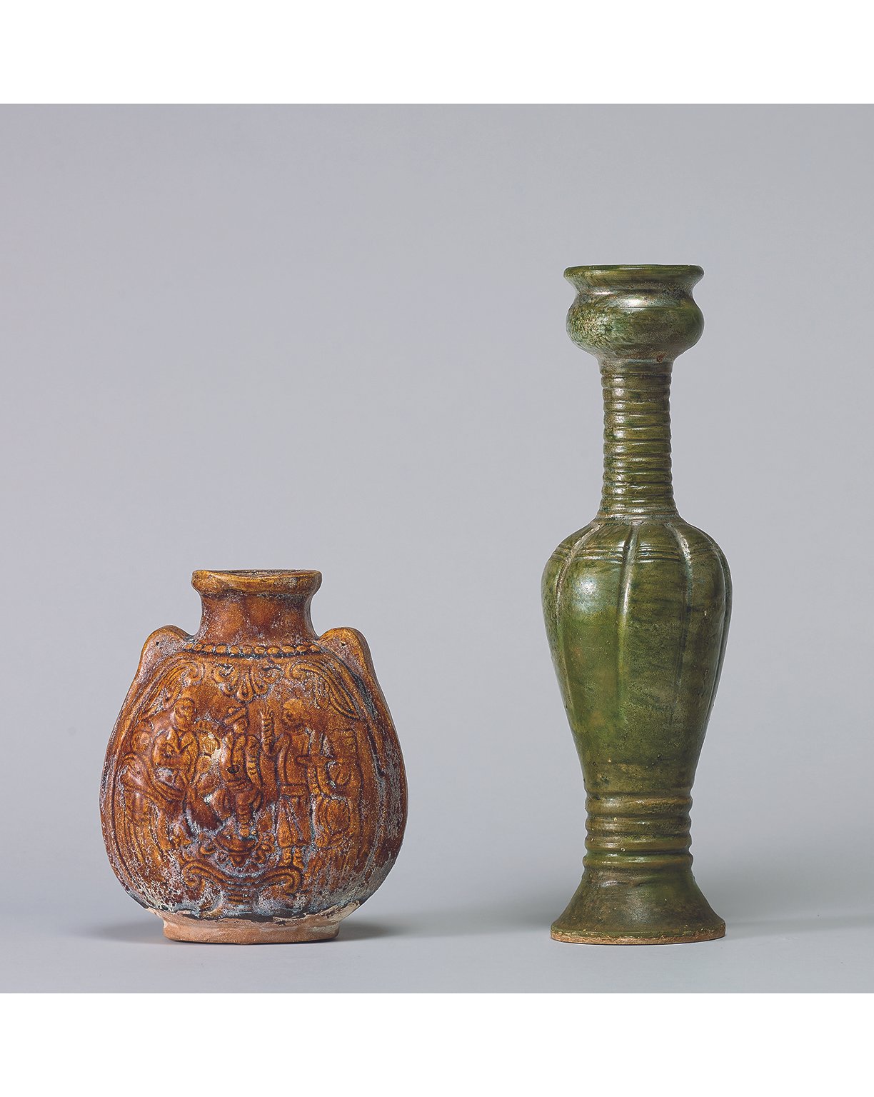 6126 黃釉舞樂紋扁壺 / 綠釉長頸瓶
