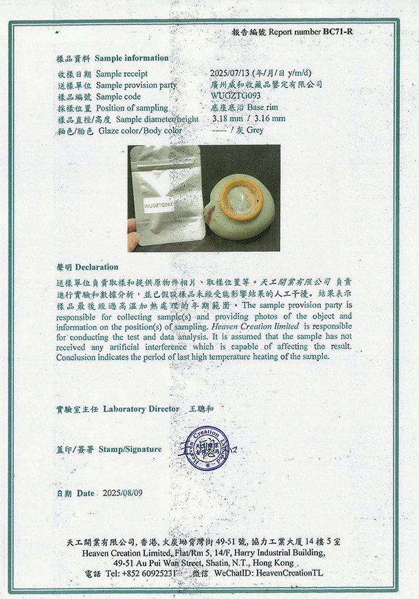 作為文房水注,它不僅是研墨添水的實用器具,更是文人案頭的清供雅玩。桃形的吉祥寓意與仿鈞釉的古雅質感相結合,讓一件文房小器兼具實用、審美與文化三重價值,是清代文房文化與仿古工藝交融的縮影。
