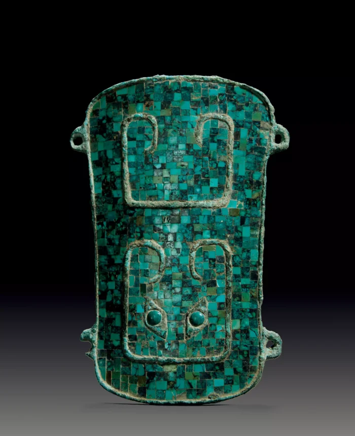 TURQUOISE INLAID BRONZE PLAQUE WITH DRAGON MASK Late Xia Dynasty