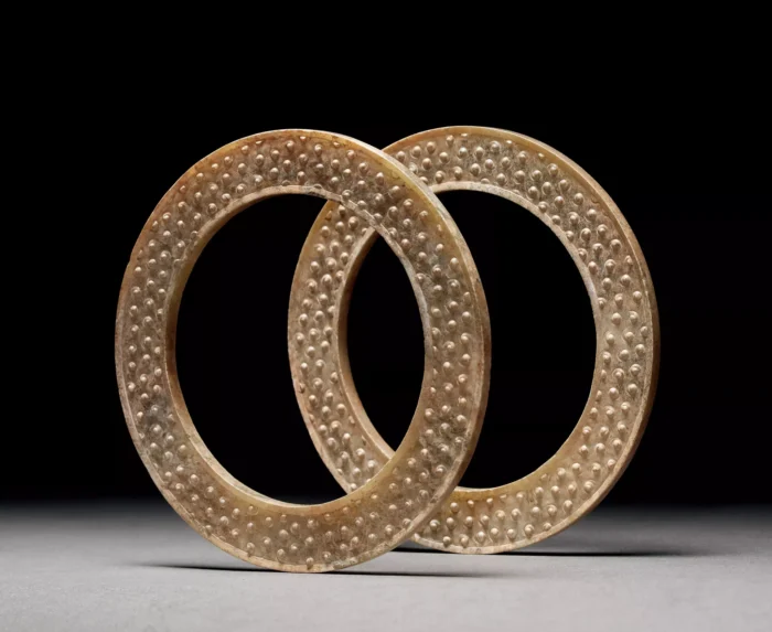 A PAIR OF WHITE JADE 'MILLET' RINGS, HUAN Warring States Period