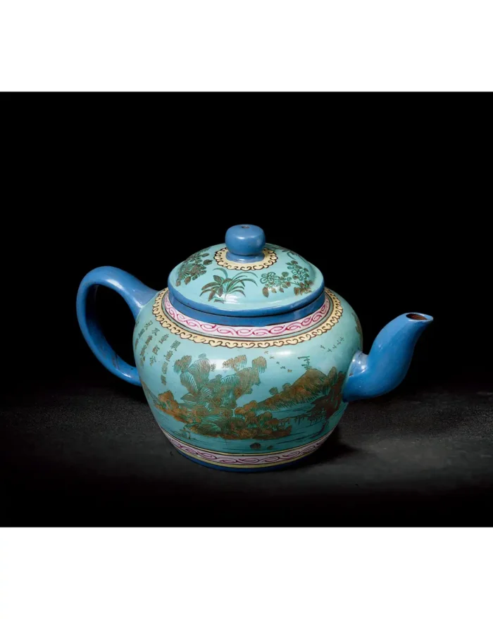 COLORED TEAPOT WITH POETRY PATTERN MADE BY SHAO YUANXIANG Middle Qing Dynasty