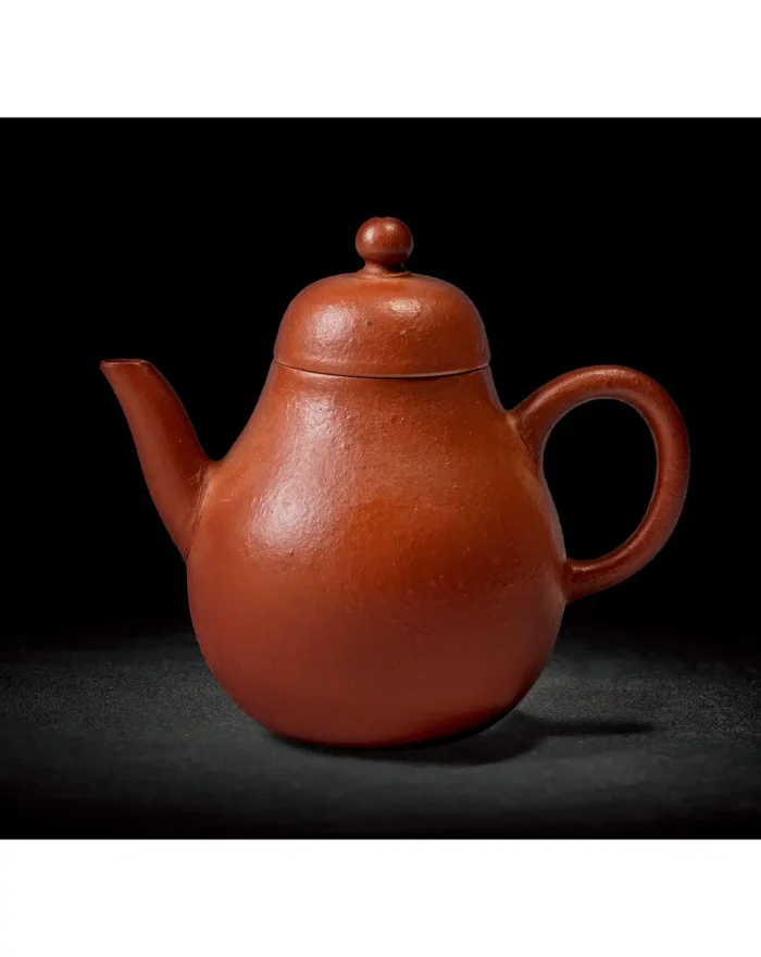 VERMILION CLAY HIGH-PEAR-SHAPED TEAPOT WITH MARK OF WAN FENG JU XUANMIDDLE QING DYNASTY