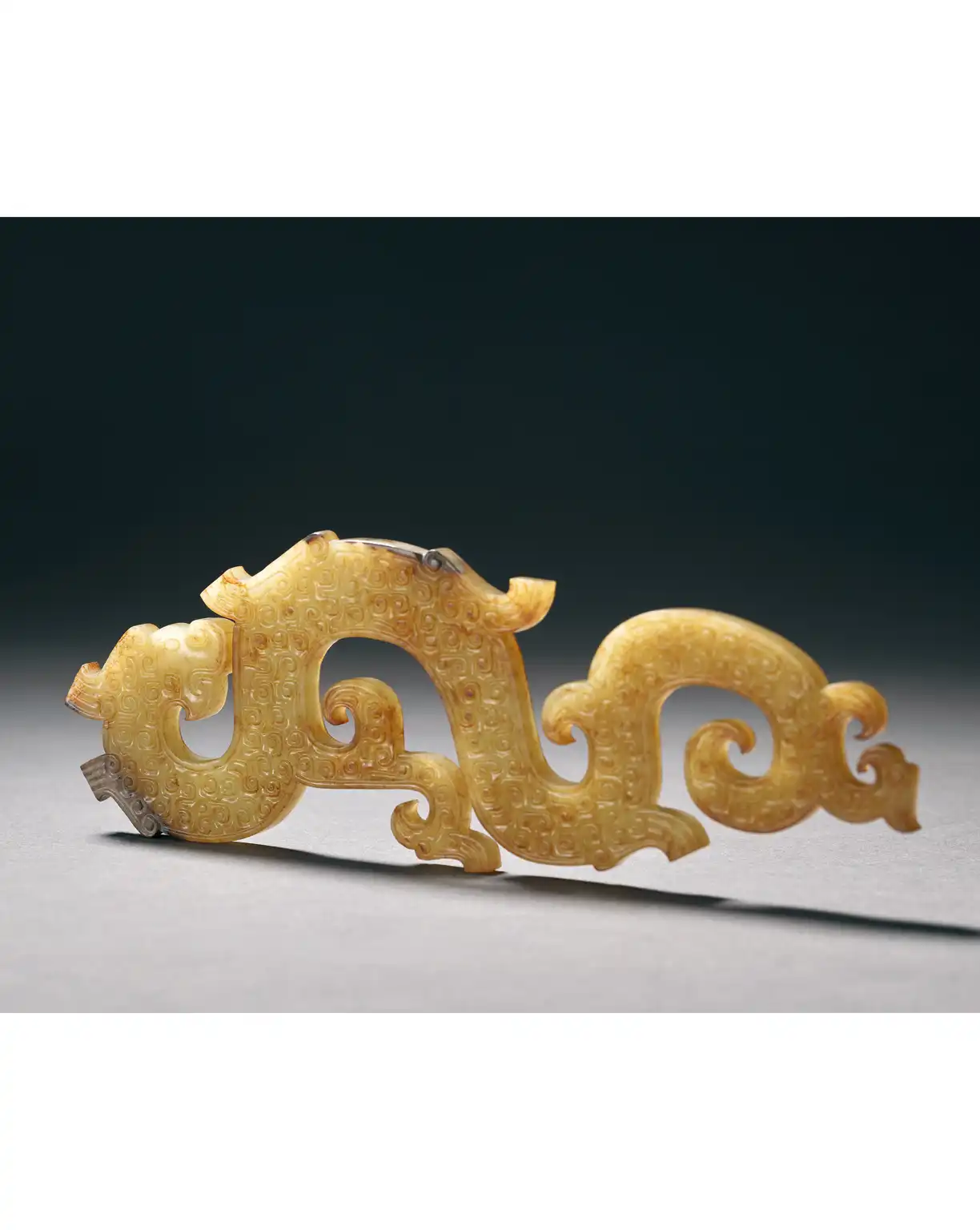 戰國時期以龍鳳同現於玉配上的設計多來自於楚系墓葬。龍鳳作為華夏文化中的吉祥象徵,代表皇權、吉祥與祥瑞,佩戴此類玉飾多表達身份地位與祈求福祉的象徵意義。總結來說,戰國白玉龍鳳佩融合了精湛的玉雕工藝與深厚的文化內涵,是戰國時代玉器藝術與禮儀文化的象徵,更代表了當時社會的審美與信仰傳統。