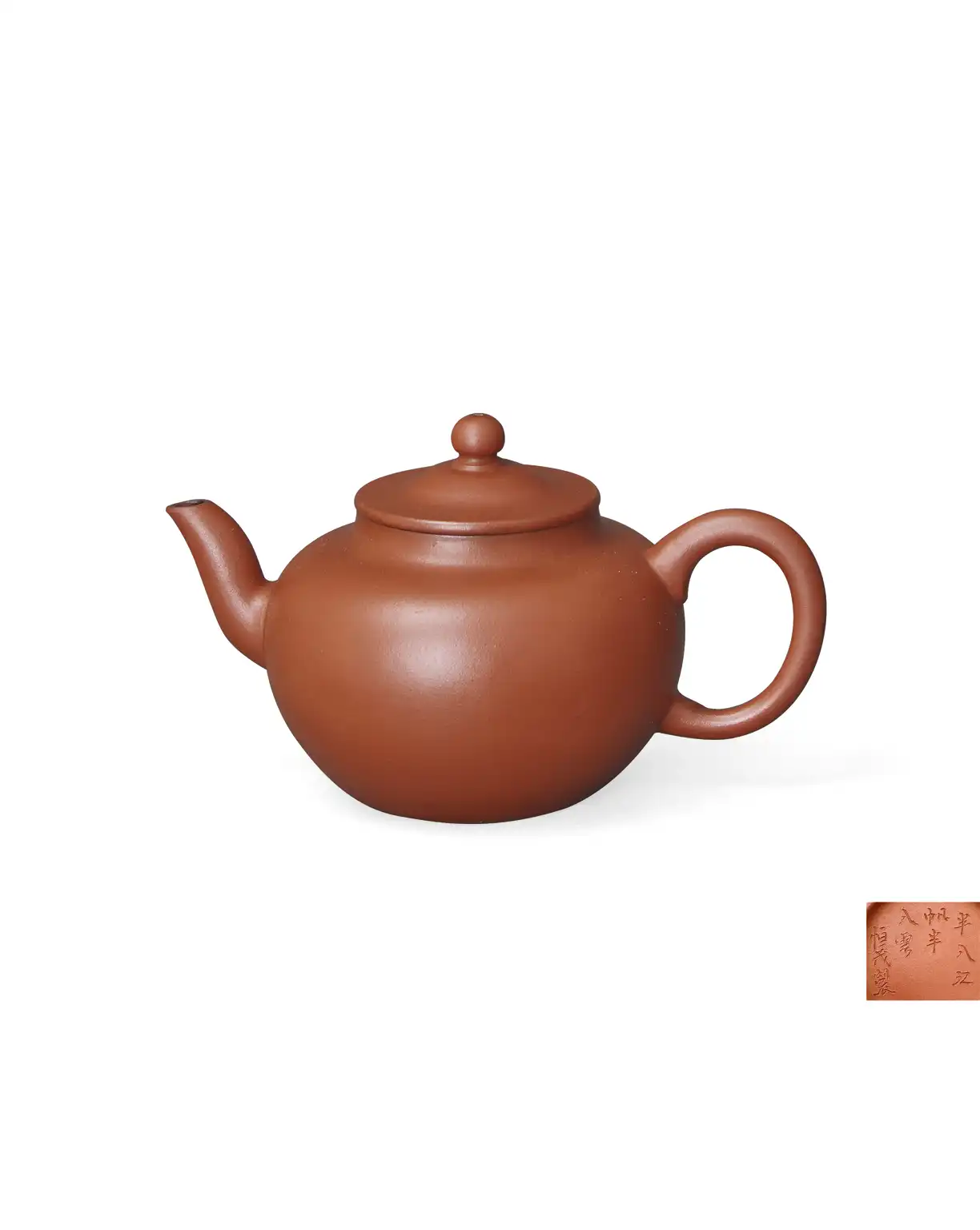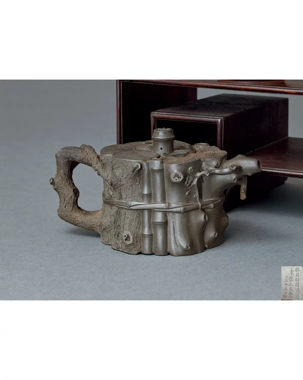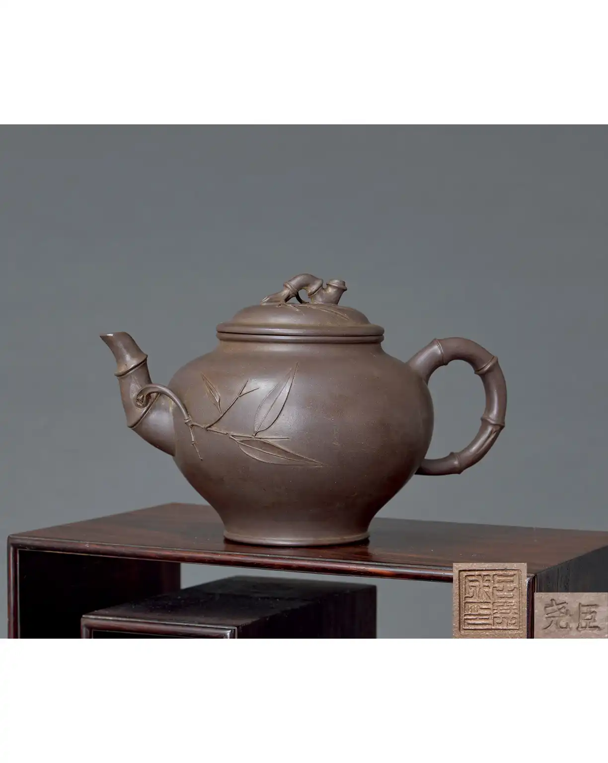 9087 民初 王寅春製 幹部杯/吳雲根製 紫泥粉漿四方傳爐
