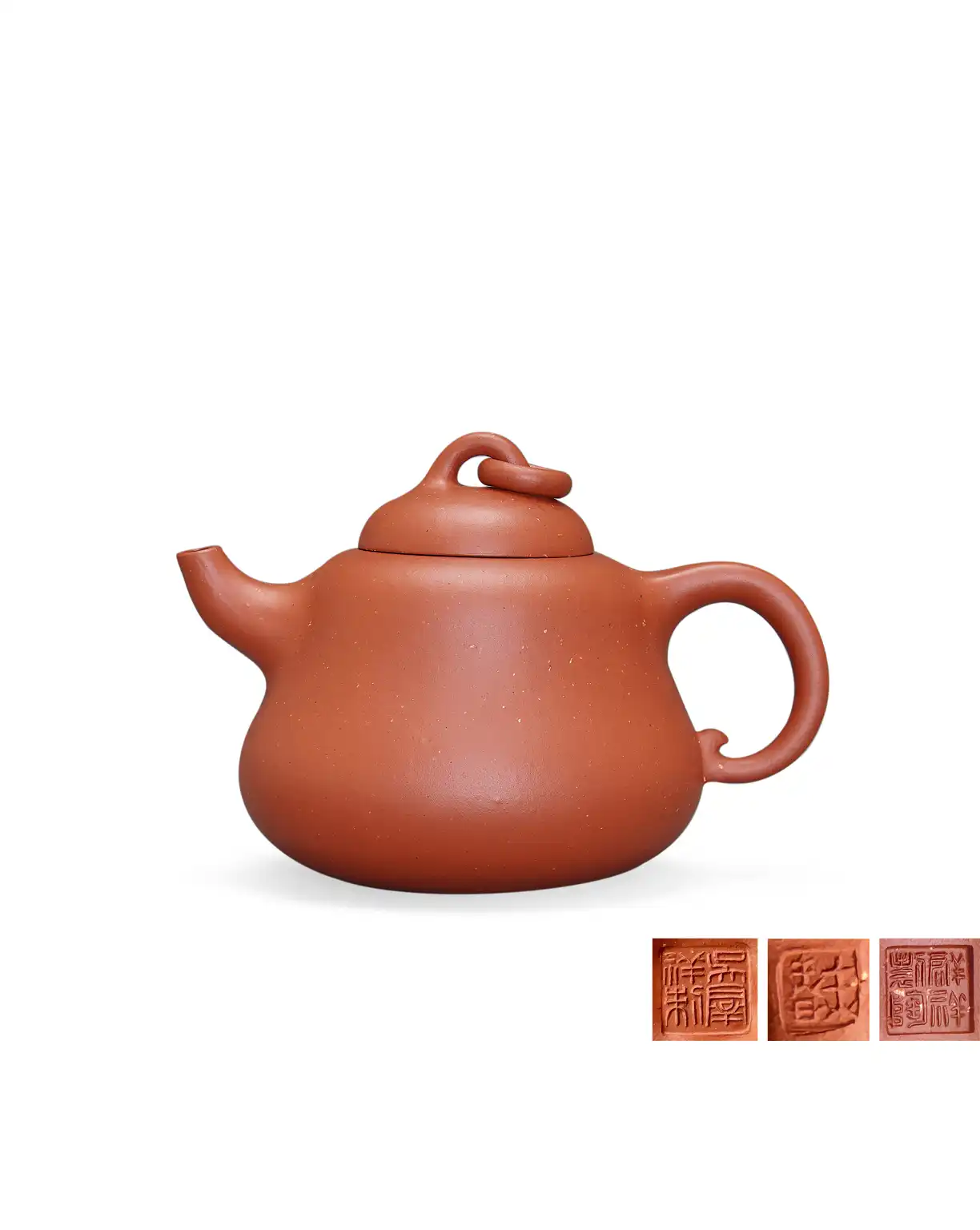 9093 民國/ 清末 福記款 朱泥孟臣高梨壺/宣德堂 紫泥甕型壺