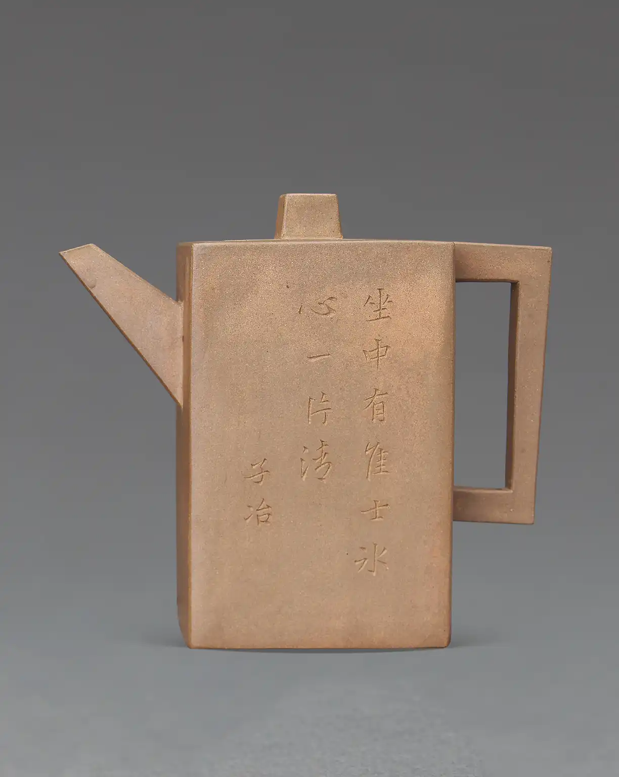 9091 清代 萬泉款 子冶刻 段泥磚方壺