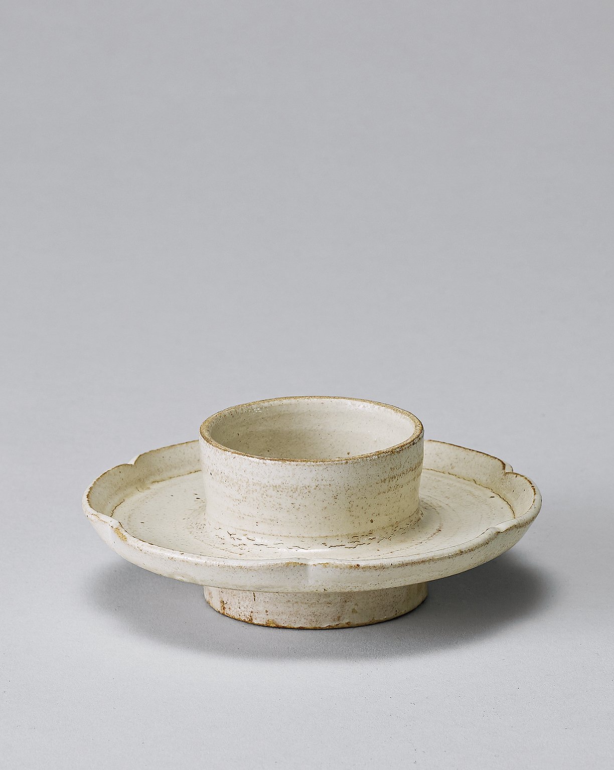 1017 宋代 磁州窯白釉葵口盞托