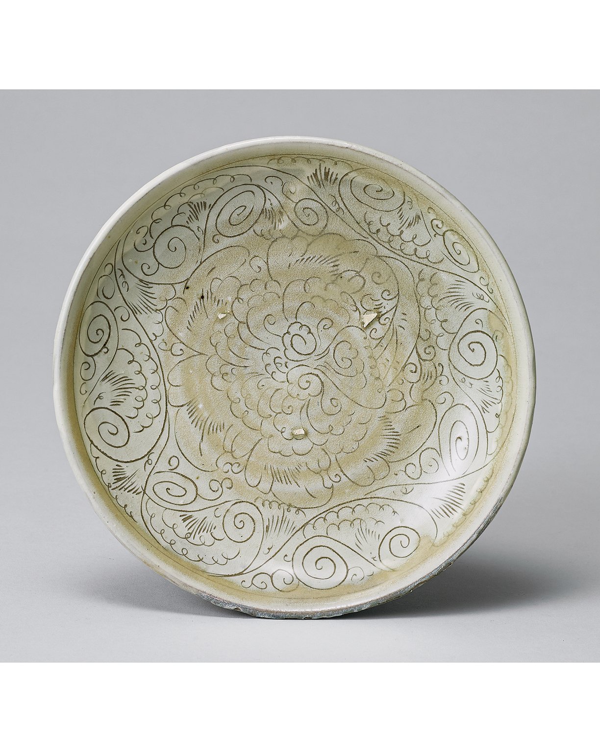 1020 宋代 登封窯白地劃牡丹紋盤