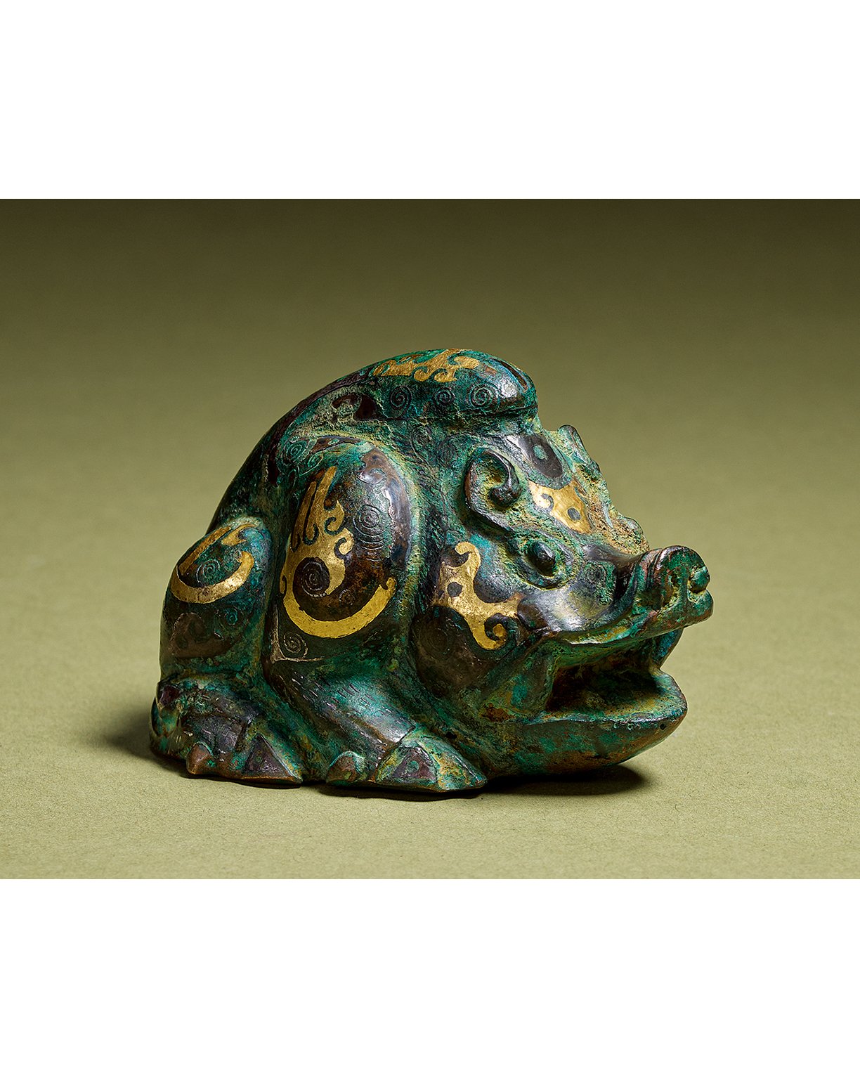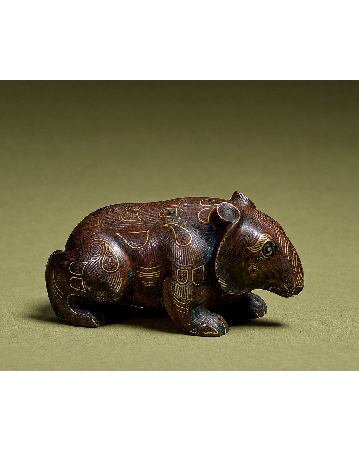 1038 戰國 銅錯金銀野豬鎮