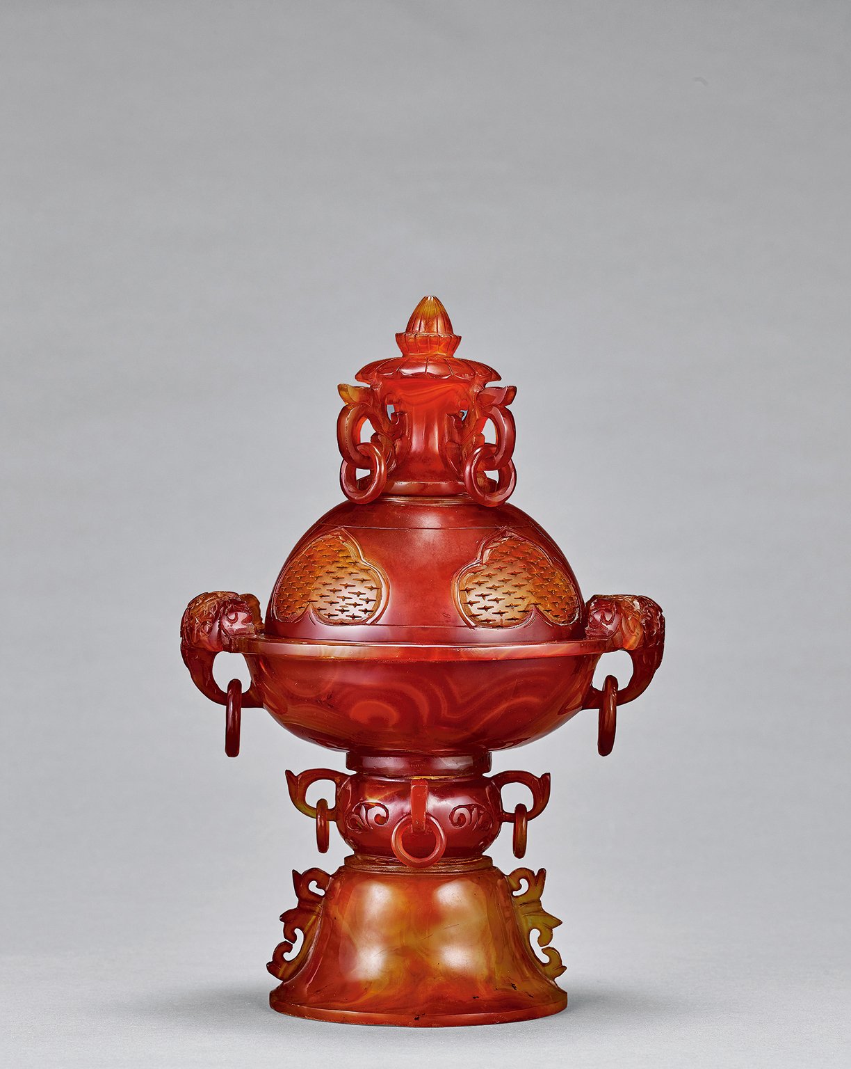 1065 清代 瑪瑙雕獸耳銜環博山式香薰