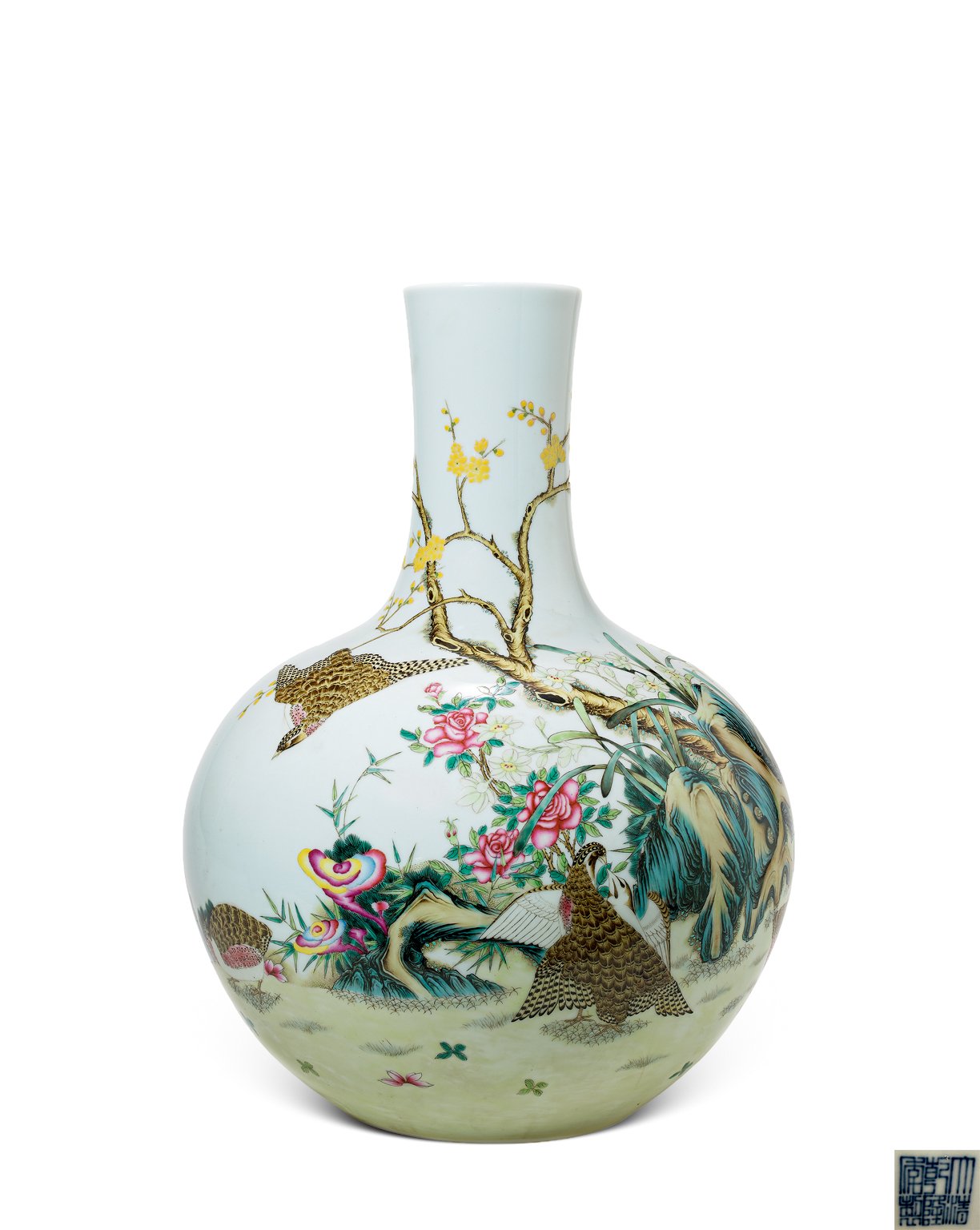 1066 清代 大清乾隆年製款 粉彩春信圖天球瓶