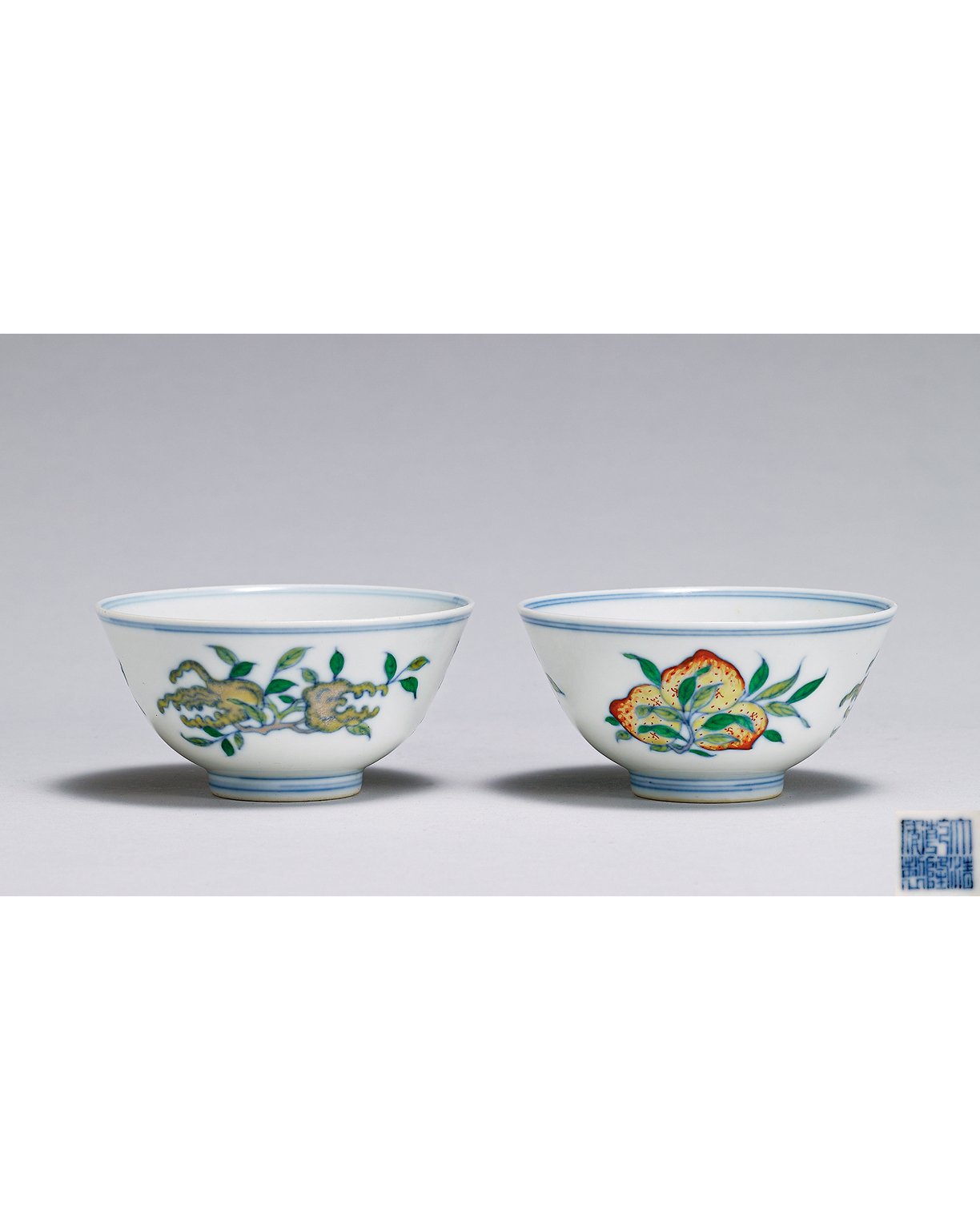 1068 清代 大清乾隆年製款 鬥彩三多杯一對