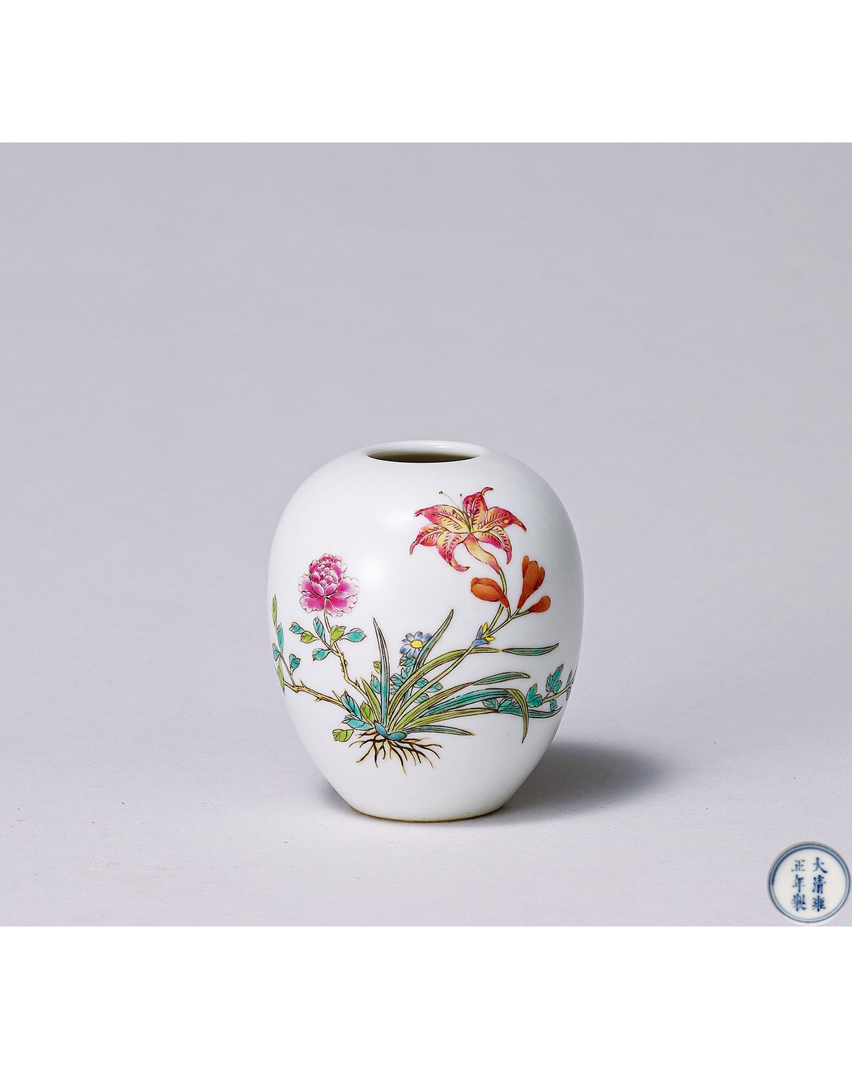 1072 清代 大清雍正年製款 粉彩花卉蝶水盂