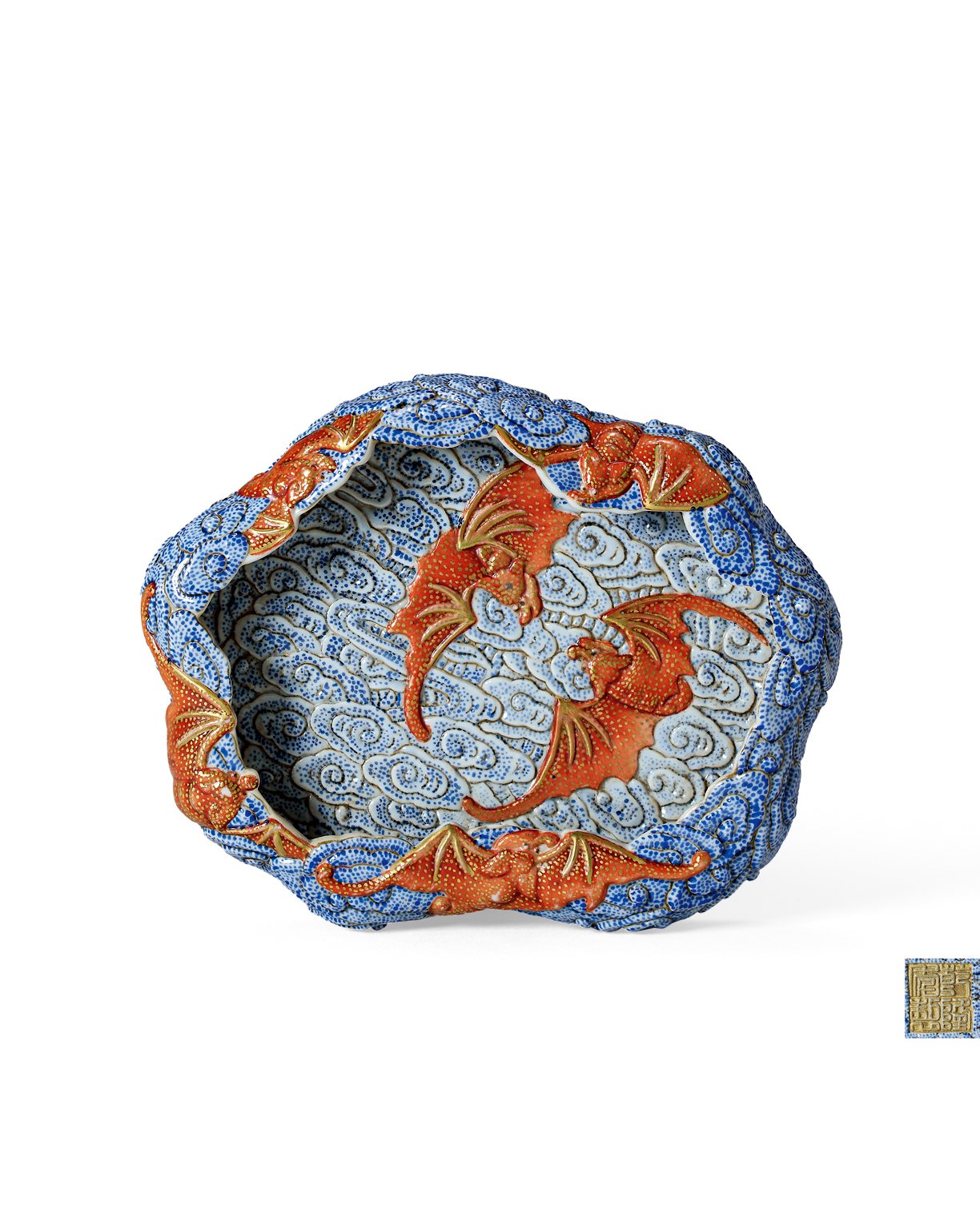 1080 清乾隆 乾隆年製 藍地軋道珊瑚紅描金雲蝠紋隨形水盂
