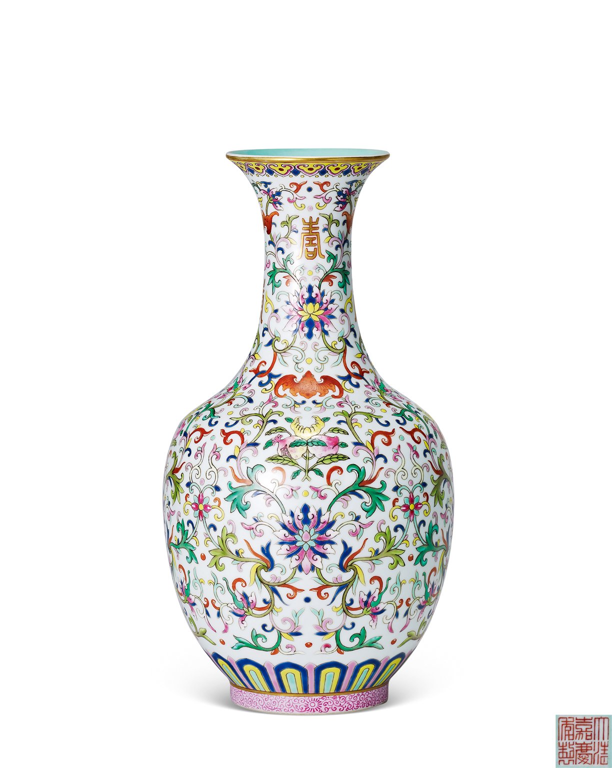 1081 清代 大清嘉慶年製款 粉彩纏枝蓮福壽紋瓶