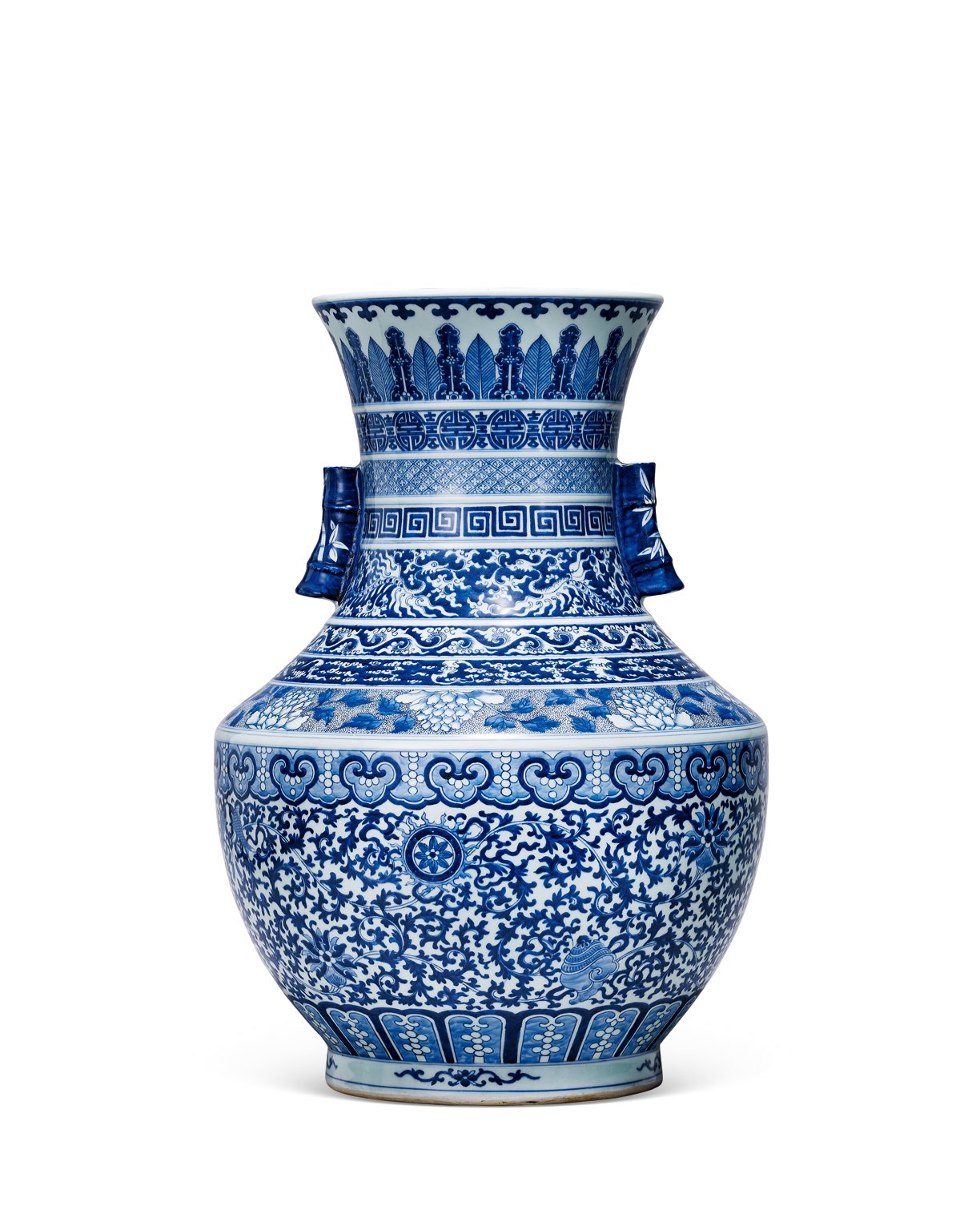 1083 18世紀 青花纏枝牡丹八寶紋貫耳尊