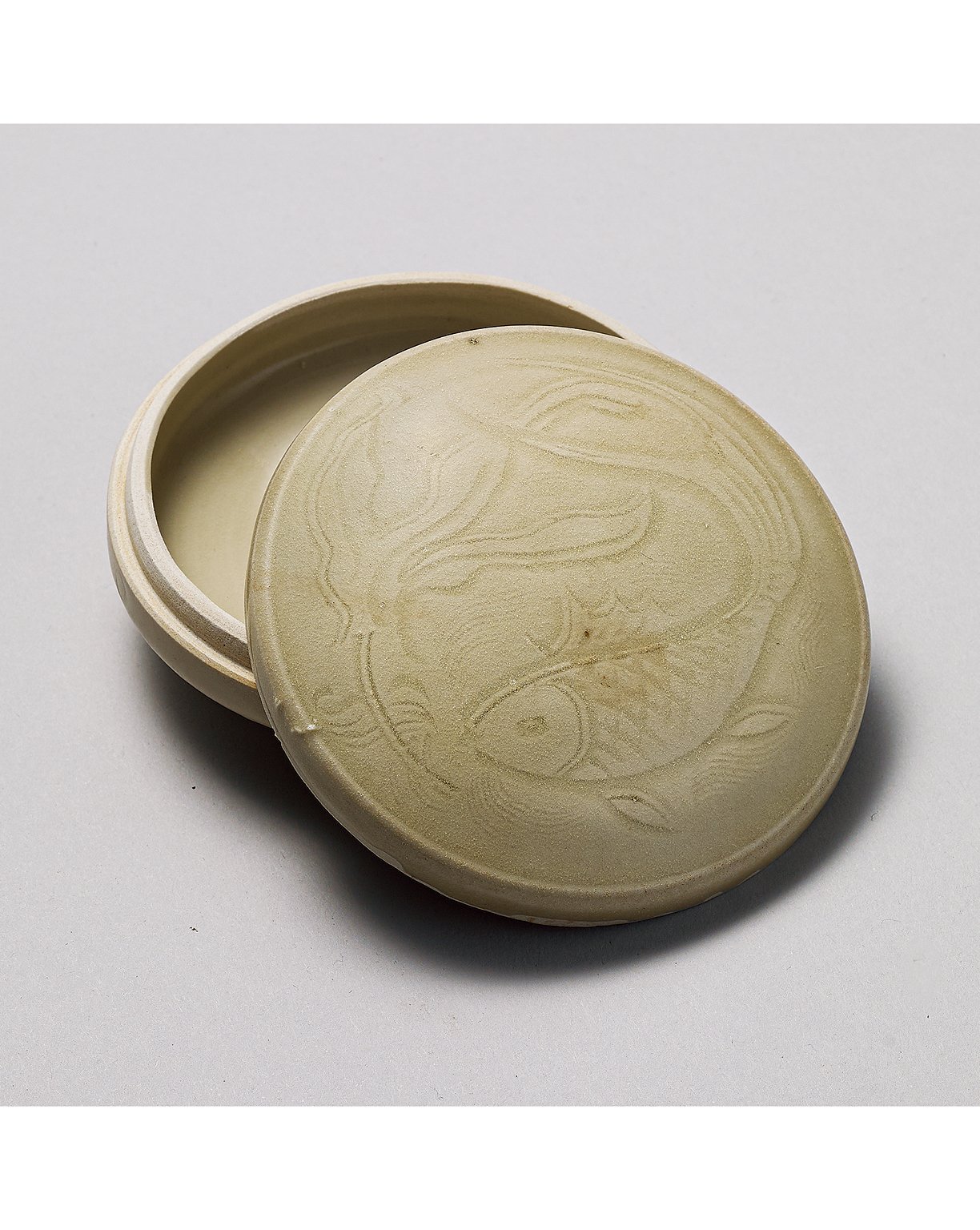 1124 北宋 白釉劃魚蓋盒