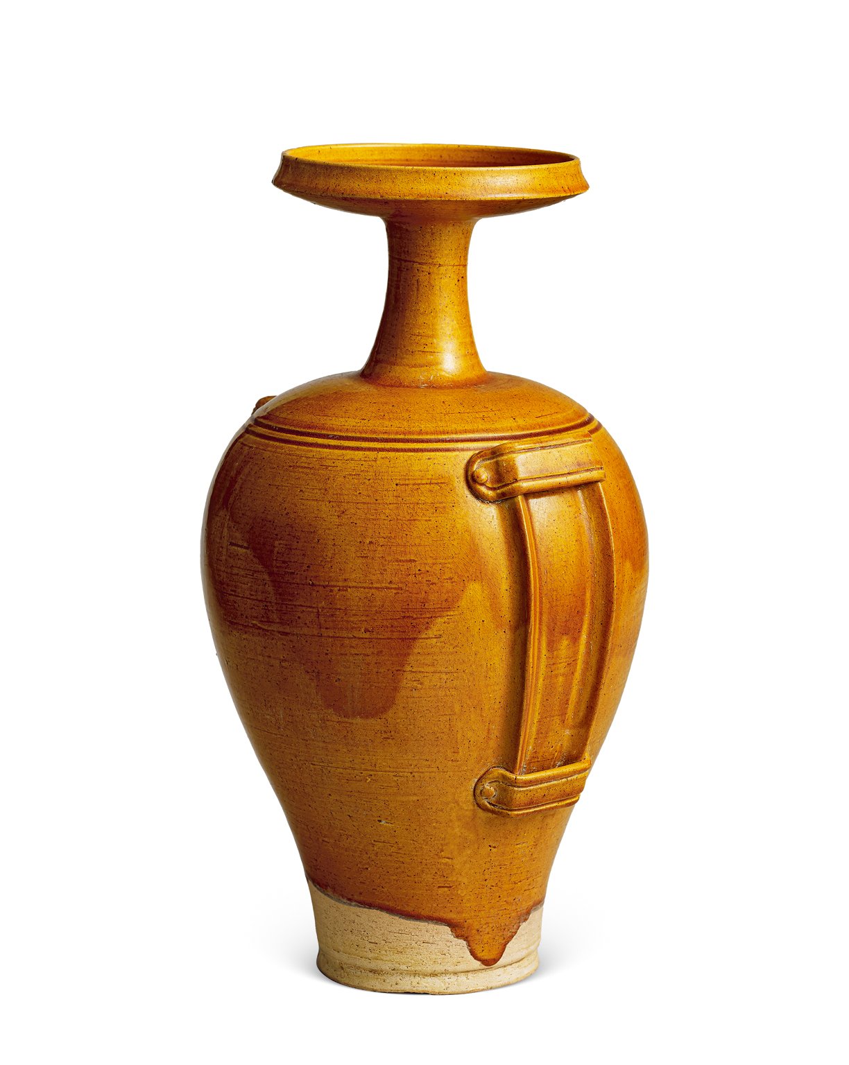 1129 北齊 黃釉弦紋盤口長頸瓶