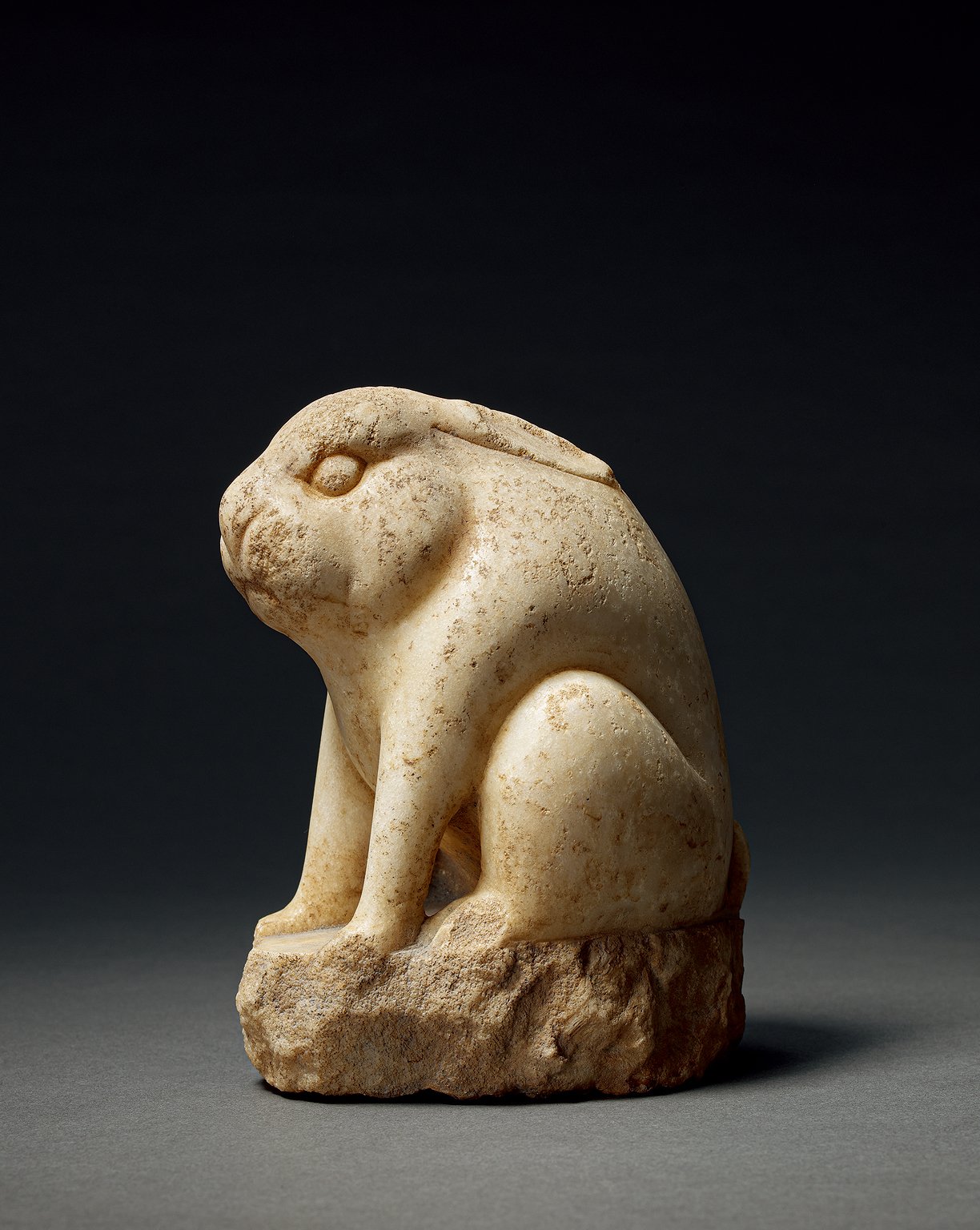 1131 唐代 漢白玉圓雕蹲兔擺件