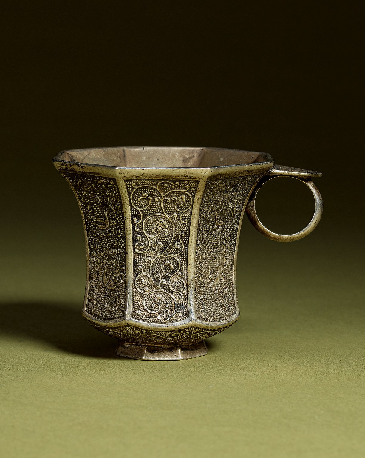 1132 唐代 銀鎏金珍珠地八角形耳杯