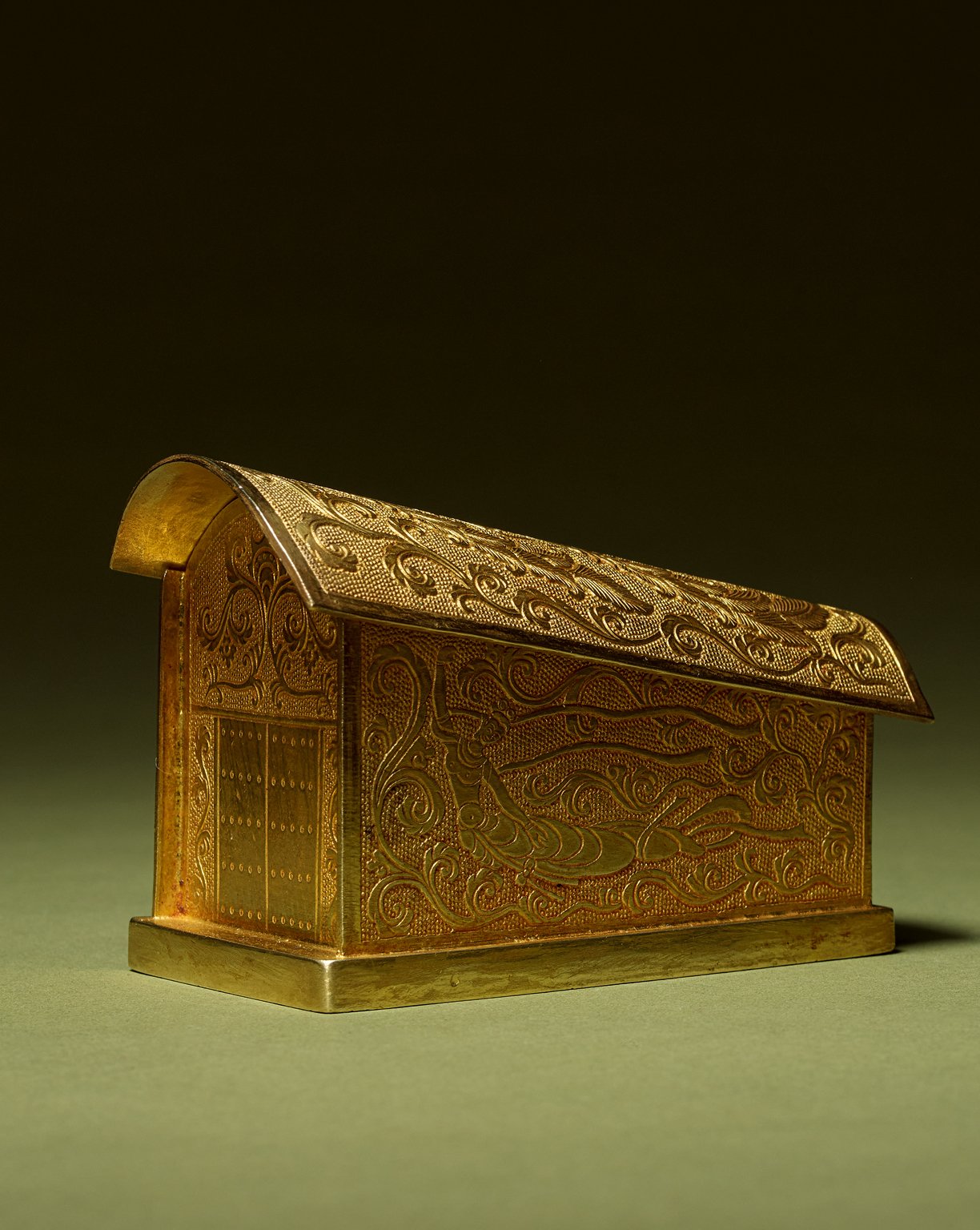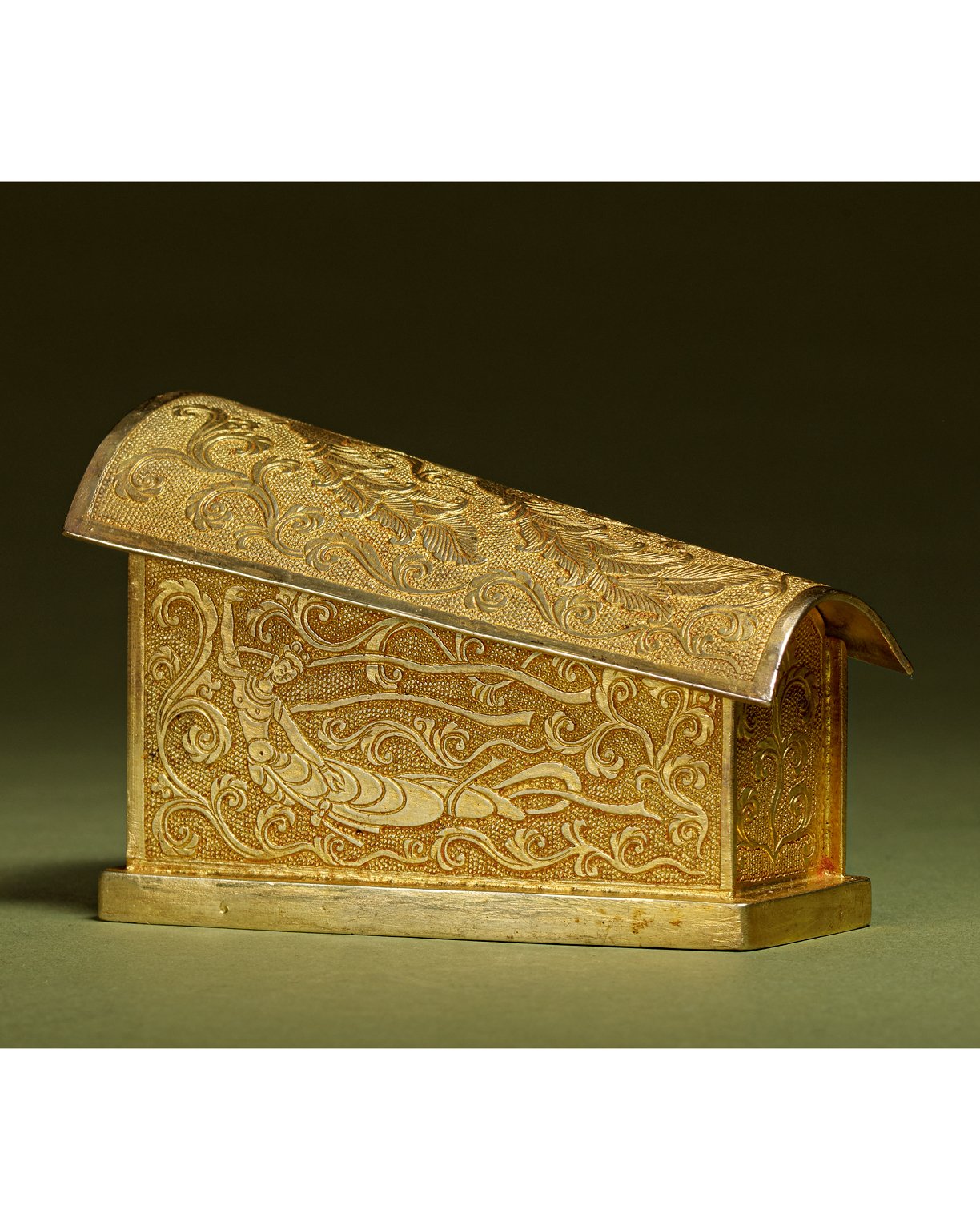 1134 唐代 鏨刻飛天鳳鳥紋金棺 <附證書>