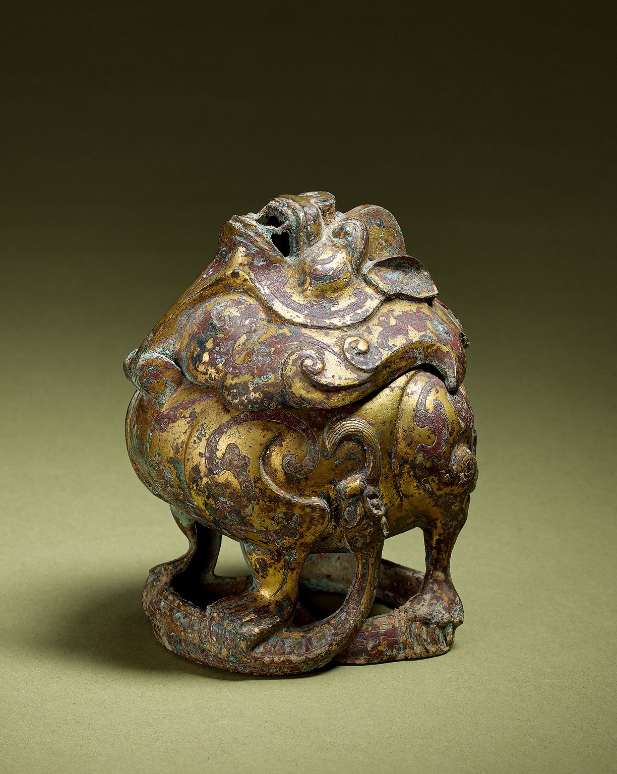 1136 六朝 銅鎏金望天吼香熏