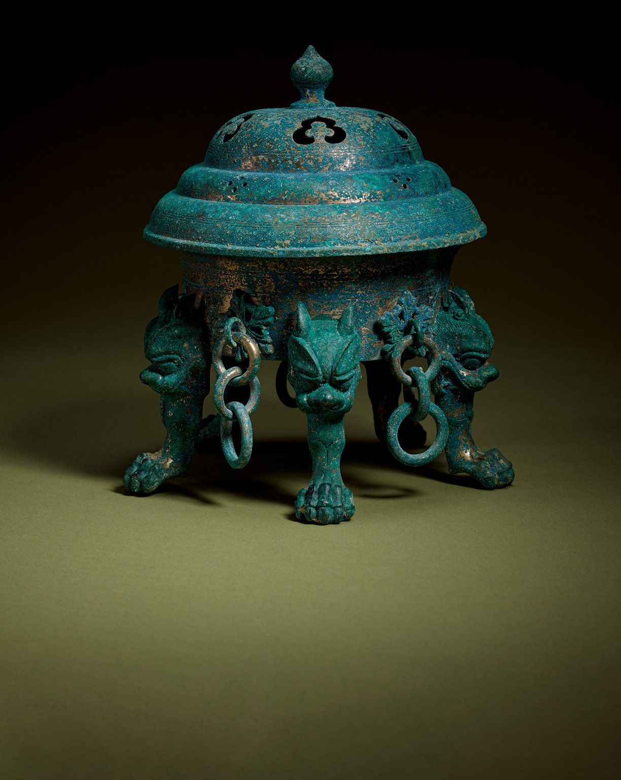 1137 唐代 青銅獸首銜環五足香熏