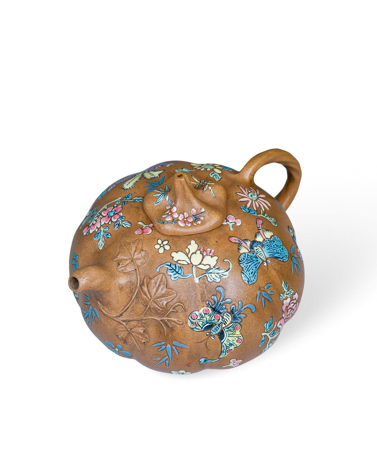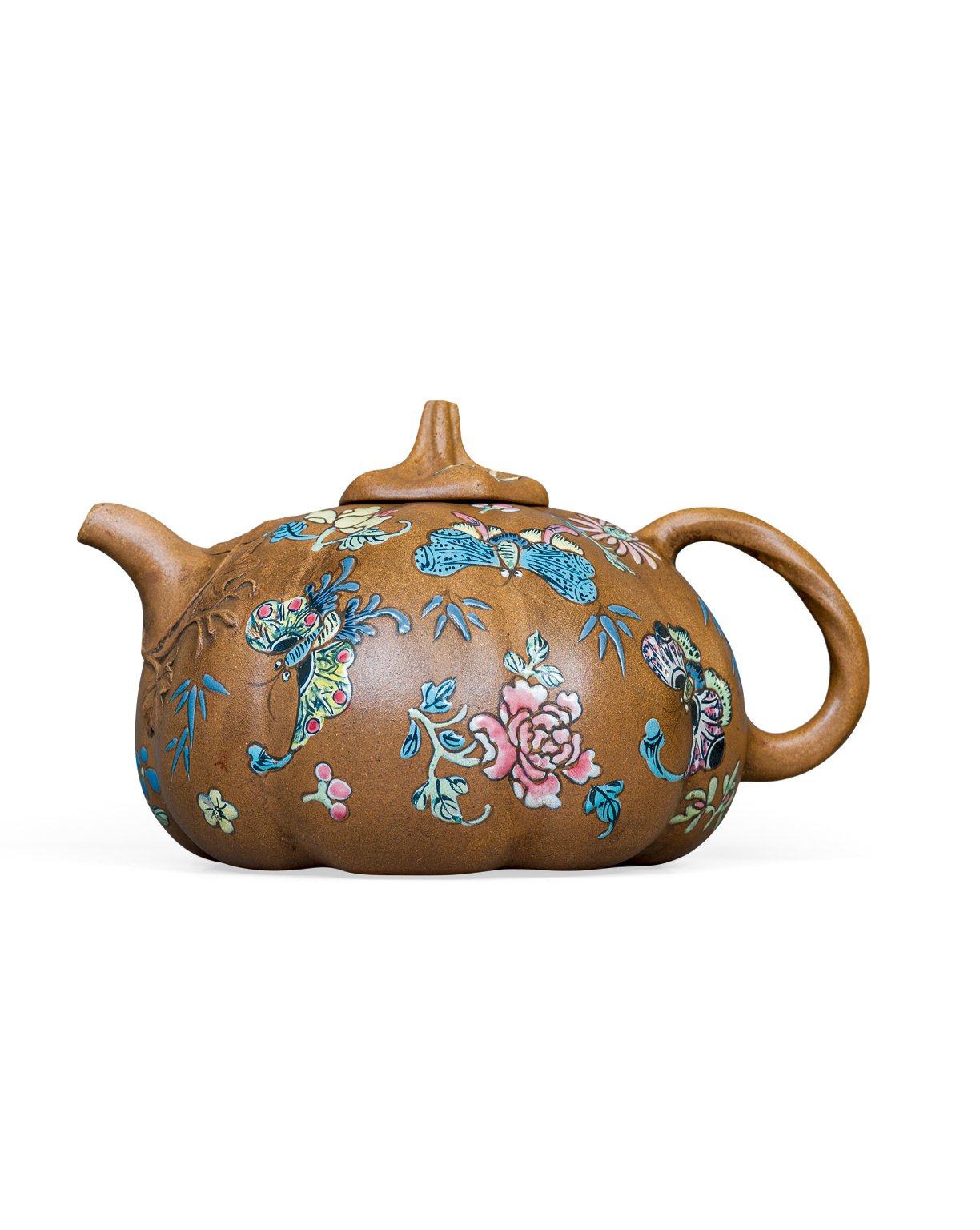 3130 清中期 泥繪彩蝶南瓜壺